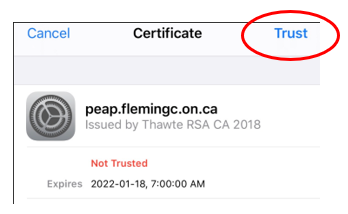 - Enter peap.flemingc.on.ca as the domain if required by your device.