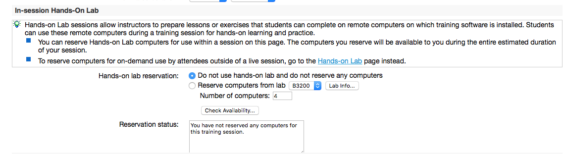 - Click Check Availability identifies if you have enough computers for your scheduled session