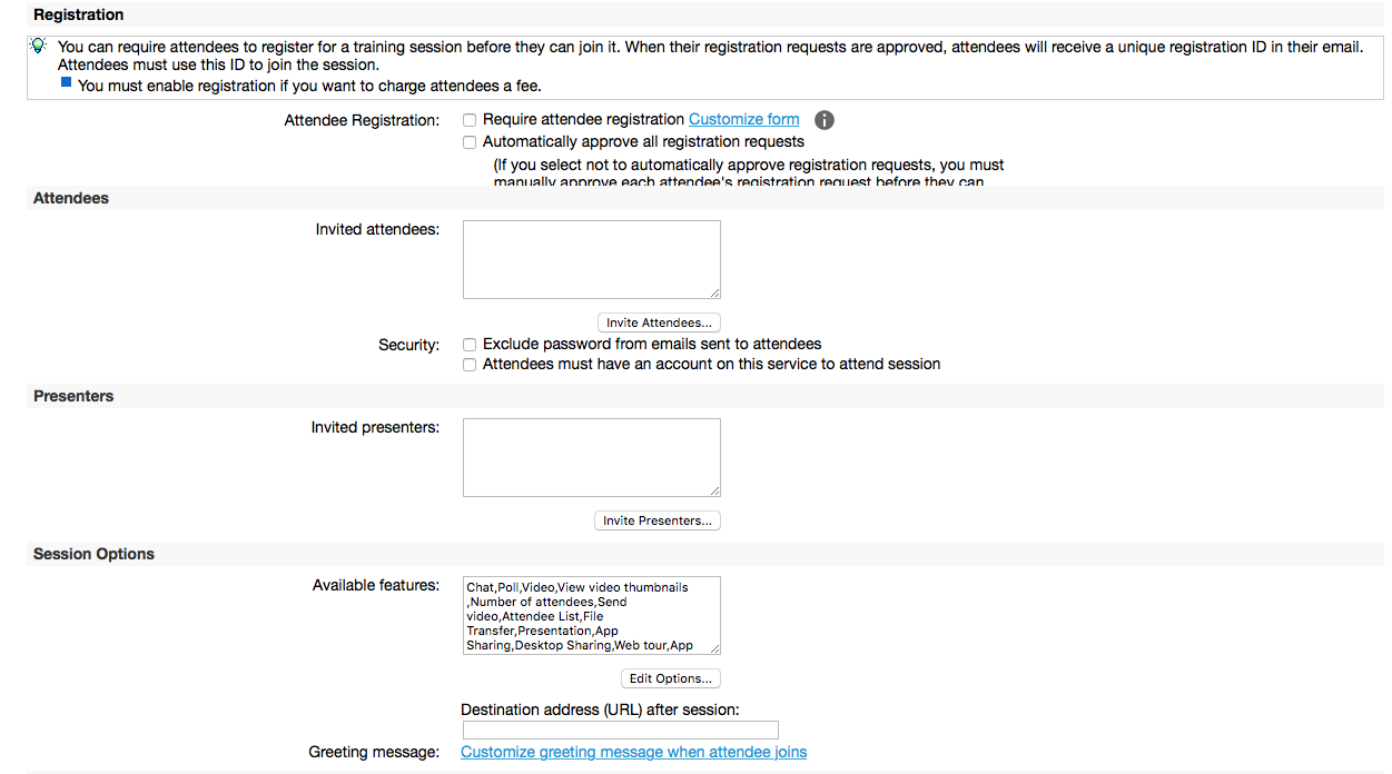 5. Registration: you can require that training session attendees register for a training session before they can join it. Requiring the registration allows the following”