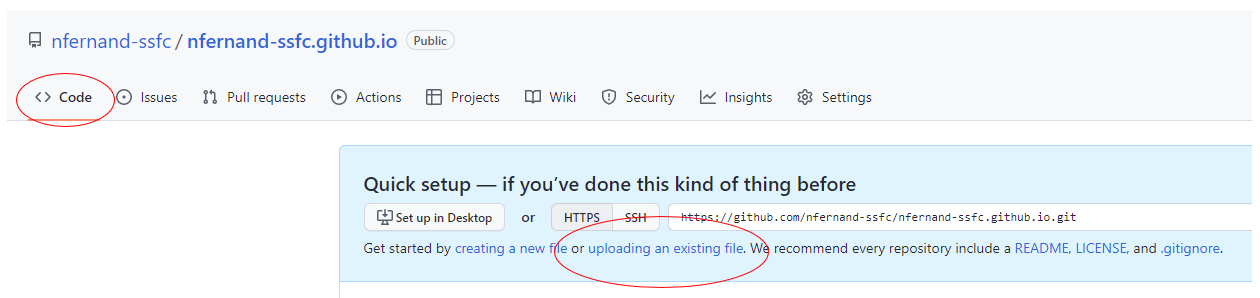 - From the “Code” tab of your new repository, select “uploading an existing file” and then upload the contents of your H:\htdocs folder.