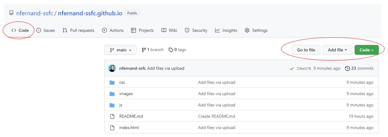 - From the “Code” tab of your repository, edit your website files and add more files as needed.