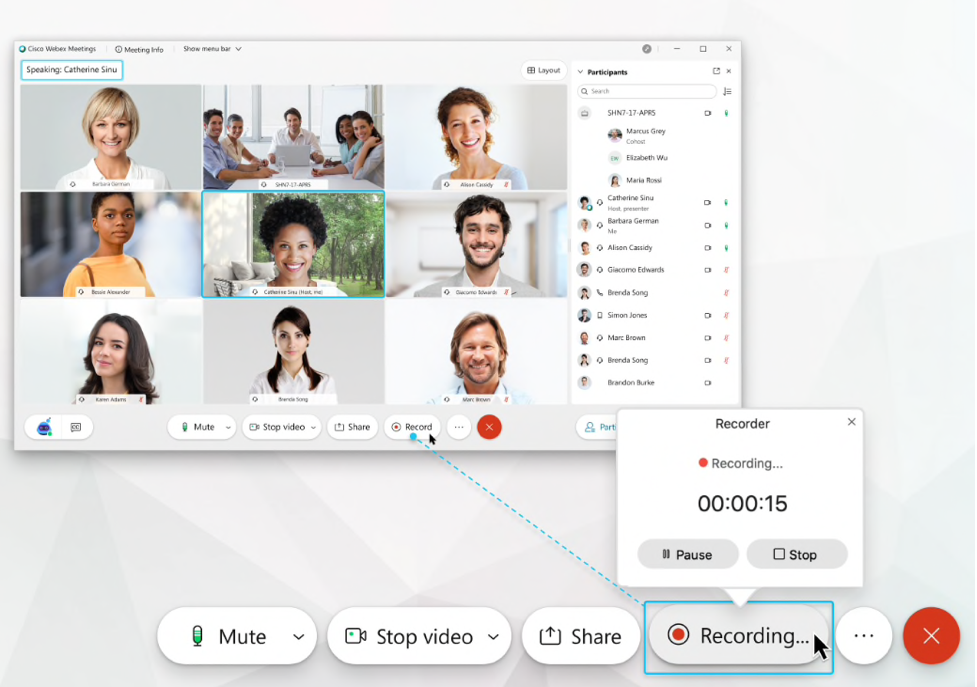 Webex can record your meeting, lecture, or webinar for people who can’t attend or for those that want to refer back to review what was discussed. When you initiate a recording, you MUST disclose that you are going to be recording the Webex.