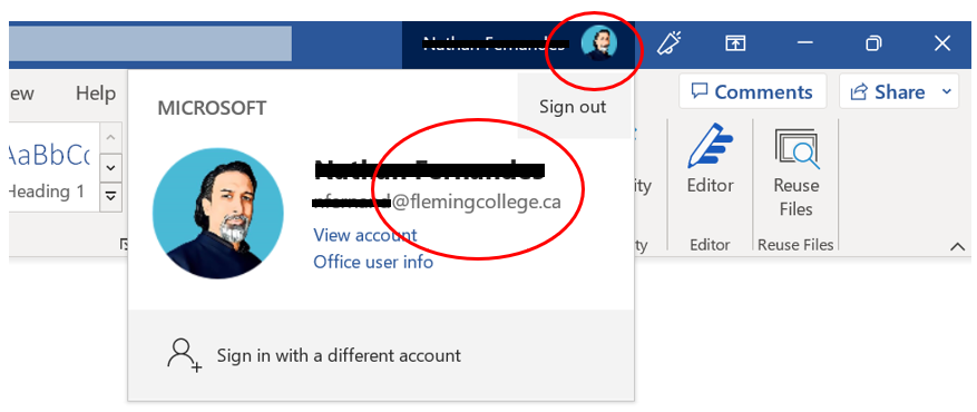 - Open Microsoft Word on your computer and confirm that you are signed in with your Fleming account.