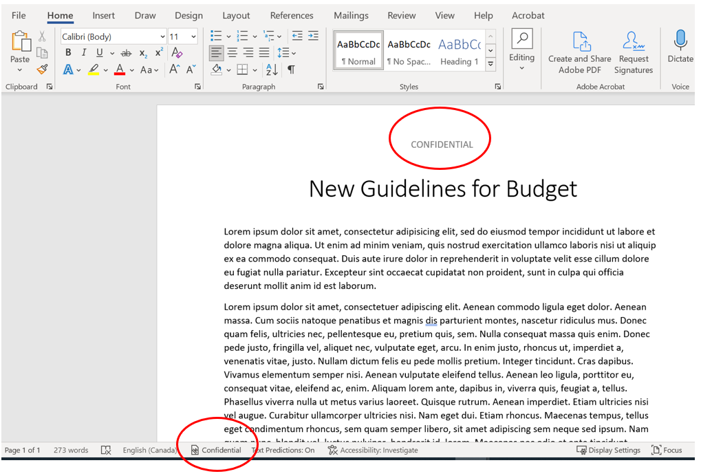 Answer: Follow these directions by Microsoft: https://support.microsoft.com/en-us/office/apply-sensitivity-labels-to-your-files-and-email-in-office-2f96e7cd-d5a4-403b-8bd7-4cc636bae0f9