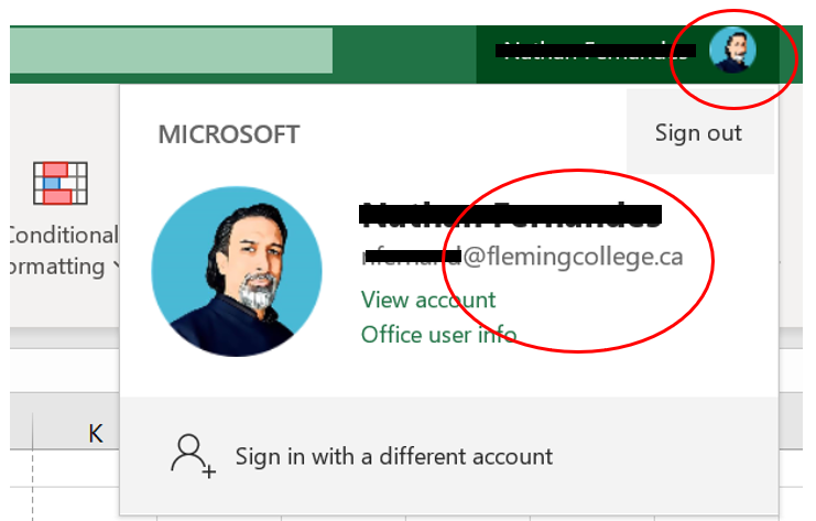 - Open Microsoft Excel on your computer and confirm that you are signed in with your Fleming account.