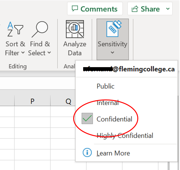- Open or create an Excel document, select “Sensitivity,” and then select the label you wish to apply.