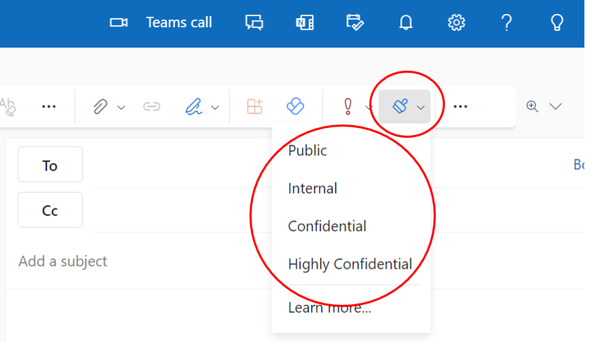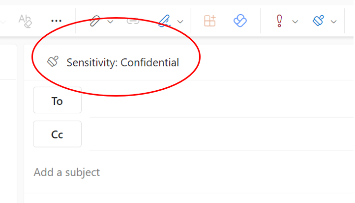 - In the window of your new email, select “Sensitivity” and then select the label you wish to apply.