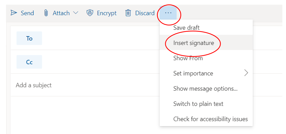 - To manually insert your signature, select the ellipsis and then “Insert signature.”